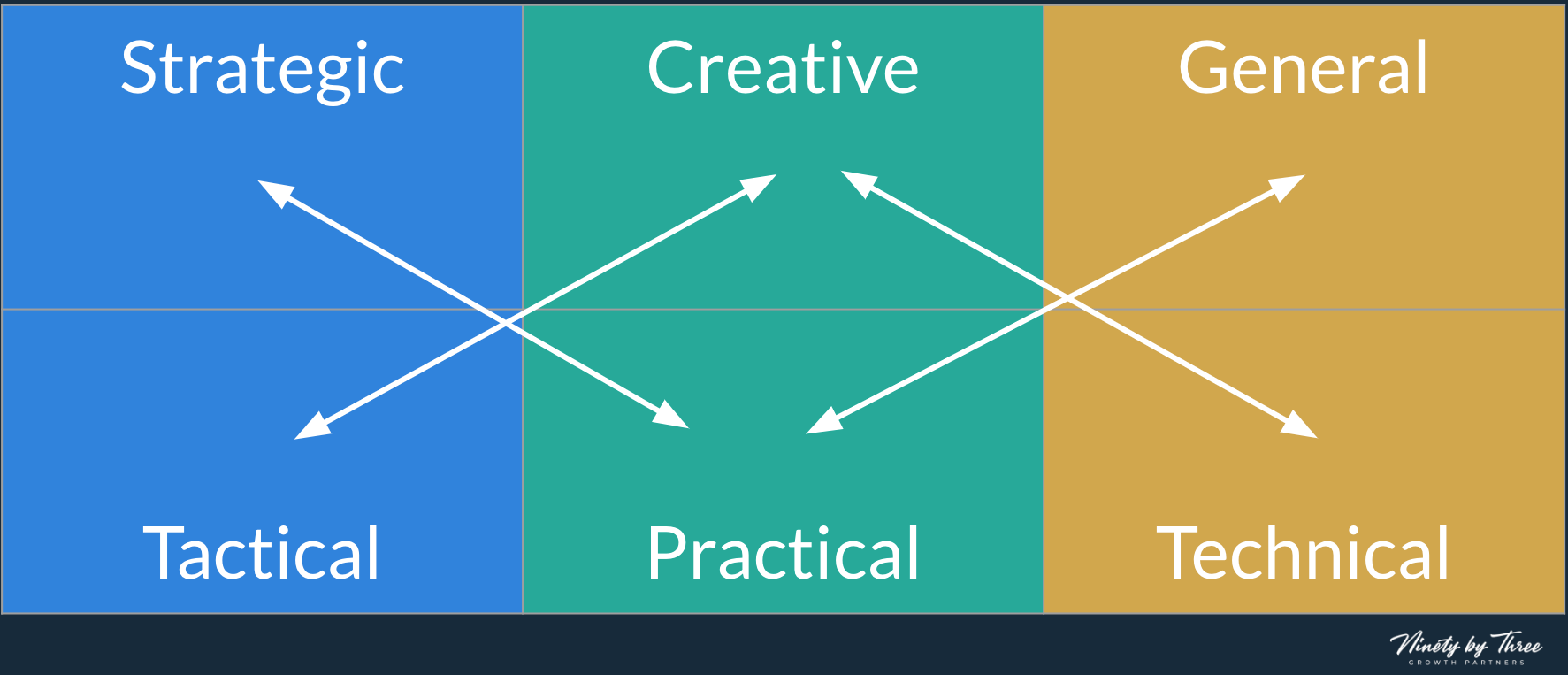 In the example above, I illustrate the difference between “big picture” abilities or approaches at the top of the chart: